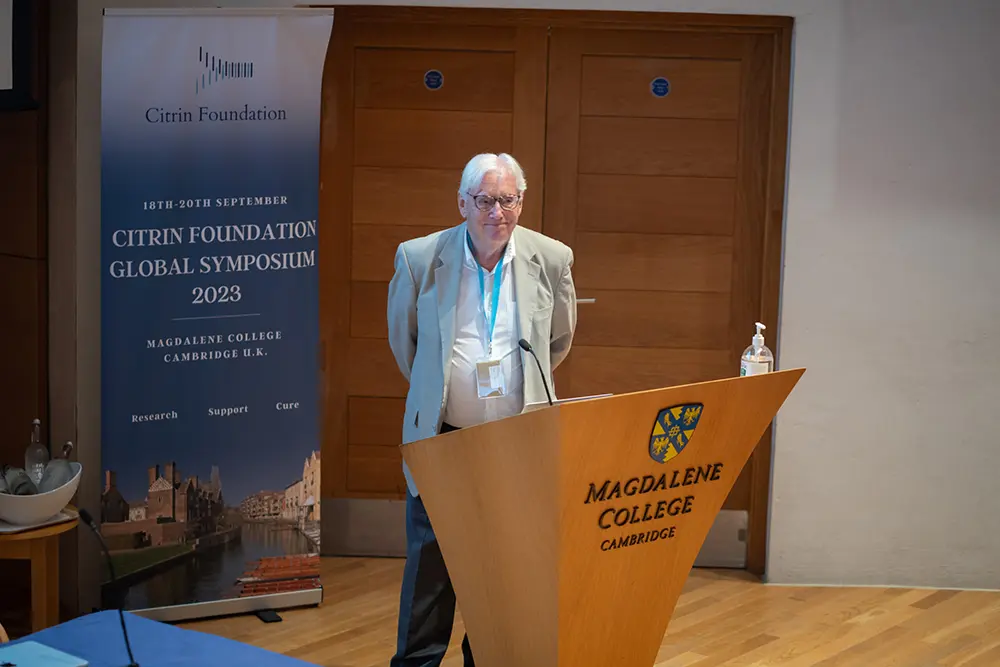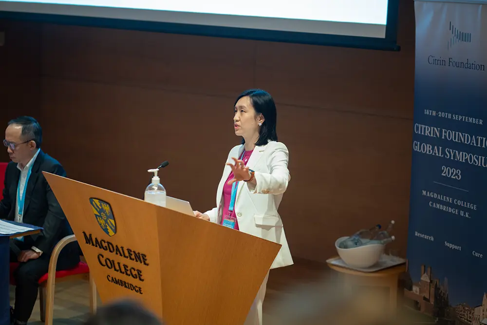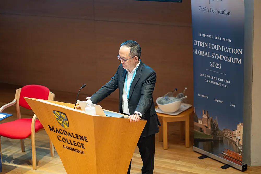 当財団の新規治療セッションは、当財団が助成している、あるいは研究している、興味深い新規治療の可能性を詳しく紹介するもので、シンポジウムの大きなハイライトとなりました。これには、CDに対するmRNA療法の開発、CDに対する遺伝子編集の可能性、アミノ酸の経口生物学的利用能を改善するナノ粒子の開発、NAD+の利用可能性を調節することに焦点を当てた低分子化合物、シトリンの代替品としてのアララーの評価、CDに対する肝臓グリセロール-3-リン酸ホスファターゼとグリセロールシャントのターゲットの可能性などが含まれます。